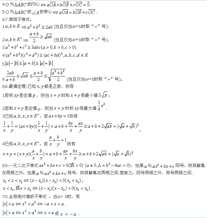 2013高考數學公式大全及詳解:向量與不等式公式(2)