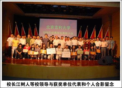 隨后,北京吉利大學校長兼校黨委書記江樹人教授,黨委常務副書記張國慶,校黨委副書記劉艷先后為北京吉利大學2008年度校級三好學生標兵、校級優(yōu)秀學生干部代表、校級優(yōu)秀班集體代表;榮獲市級榮譽的學生代表、區(qū)級榮譽的學生代表、校級榮譽的學生代表;北京吉利大學2008年國家獎學金,國家勵志獎學金獲得者代表、“百日文明教育活動”先進集體和個人代表、首都教育系統(tǒng)奧運工作先進集體獲得者、北京吉利大學2008年心理教育工作先進社團和個人代表分別頒獎。