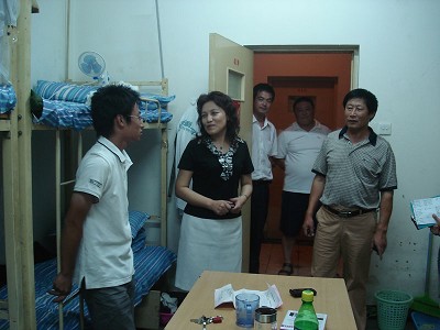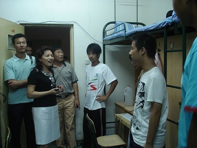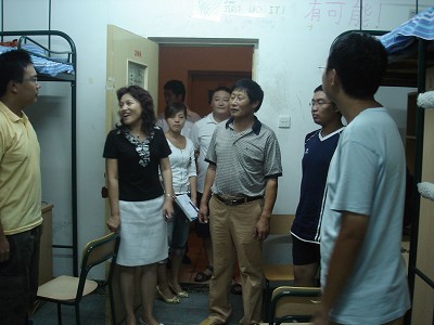 每到一個新生宿舍,吉利領導都代表全院教師向09級新同學表達了親切的問候,楊宏院長仔細詢問了每一位新生的生活情況,“你的家是哪里的?”、“能不能適應北京的天氣?”一句句親切的問候讓遠道而來的新生們感受到了這個大家庭的溫馨。