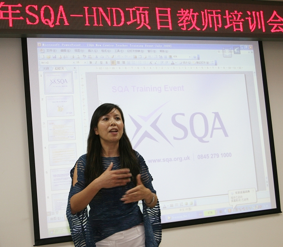 2009年8月20日至21日,SQA-HND(英國高等教育文憑)項目教師培訓會議在北京理工大學研究生樓111會議室召開。中國留學生服務中心國際合作處處長車偉民、中留服吟虹公司負責人賈洪雷、北京理工大學人文與社會科學學院書記張紅峻、副書記高偉濤、學院SQA中心負責人宋桂芝、SQA中國區項目負責人Mary Gao等領導參加了會議開幕式,來自各院校SQA中心的30余名教師與項目協調員參加此次培訓。