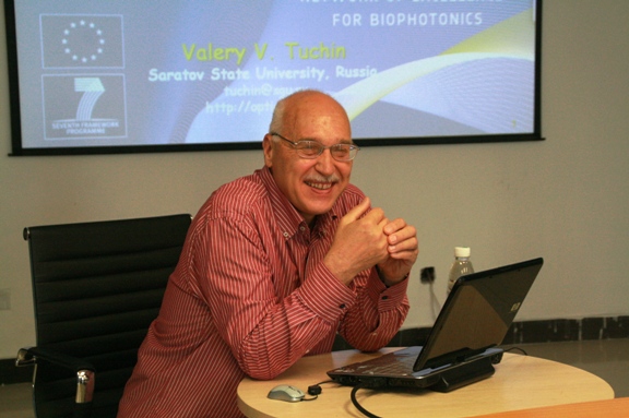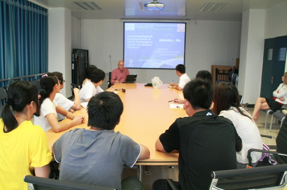 Valery V. Tuchin院士在生命學院會議室為暑期在校的研究生、本科生同學介紹了OCT、光學納米捕獲等國際先進技術,并向同學們著重介紹了俄羅斯Saratov大學相關專業的學習,科研及發展情況。他鼓勵各位同學在本科階段盡早投入科研項目,鍛煉自己的動手能力,在實踐中學習專業知識,為自己的人生打下牢固的基礎。在交流會的尾聲,現場同學就教授介紹的內容提出相關問題,Tuchin院士授為同學們耐心細致的解答。同學們為院士嚴謹的學術精神與治學態度所折服,紛紛表示在這次學術交流活動中受益匪淺,希望今后能多參加此類活動,為自己的學業和發展提供切實的幫助。