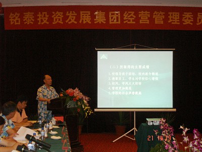 會議的內容包括:銘泰集團經營管理委員會的管理方針和組織機構設置,集團近期發展目標及未來發展戰略思考,高校教育質量保障體系建設等。集團所屬的北京吉利大學、三亞學院、浙江汽車學院等分別作了上半年工作匯報。