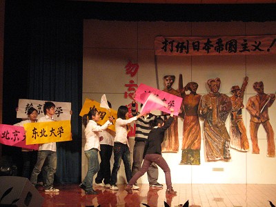 一首紅色經典《黃河大合唱》拉開了此次晚會序幕。小品《再現一二•九》為在場的觀眾重現歷史,使大家更深刻地了解了一二•九運動的意義。情景劇《最后一刻》形象地展示出了戰爭年代中,革命戰士們為了革命勝利而奮不顧身、英勇抗戰。《國泰民安》、《映山紅》、《我是中國人》圍繞晚會“紅色”主題,慷慨激昂的節目使現場氣氛一浪高過一浪。