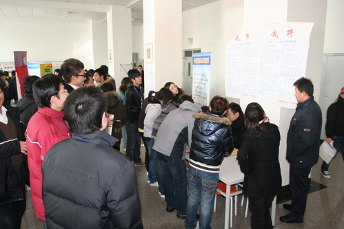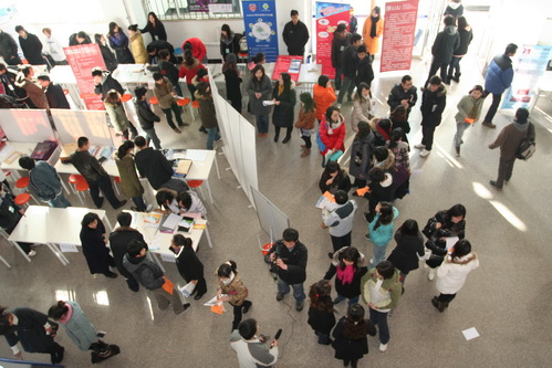 12月5日,首都師范大學科德學院2010屆畢業生“雙選會”在一教大廳隆重舉行。來自北京、天津等地的50余家企事業單位參加了“雙選會”?频聦W院董事長李寶山、黨委書記周立明、副院長張建、學工部主任姚淳、后勤辦主任馬軍、就業指導辦公室李東平老師出席了“雙選會”。此外,學工部、就業指導辦以及各學院各專業的輔導員老師都參加了“雙選會”。北方投資集團人事部經理趙玉萍也來到雙選會現場指導工作。