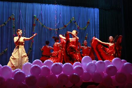 聯歡會在施嵐和08級舞蹈班的歌舞《節日歡歌》中拉開帷幕,絢麗的舞蹈和美妙的歌聲渲染了新年的喜慶。接下來08級舞蹈班又換上新裝,帶來了一段風格懷舊的舞蹈《走在山水間》,飄渺輕靈的動作把觀眾帶入一幅幅山水畫卷。