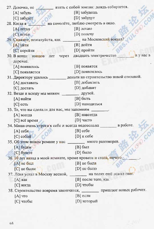 2008年成人高考專起點俄語真題及答案
