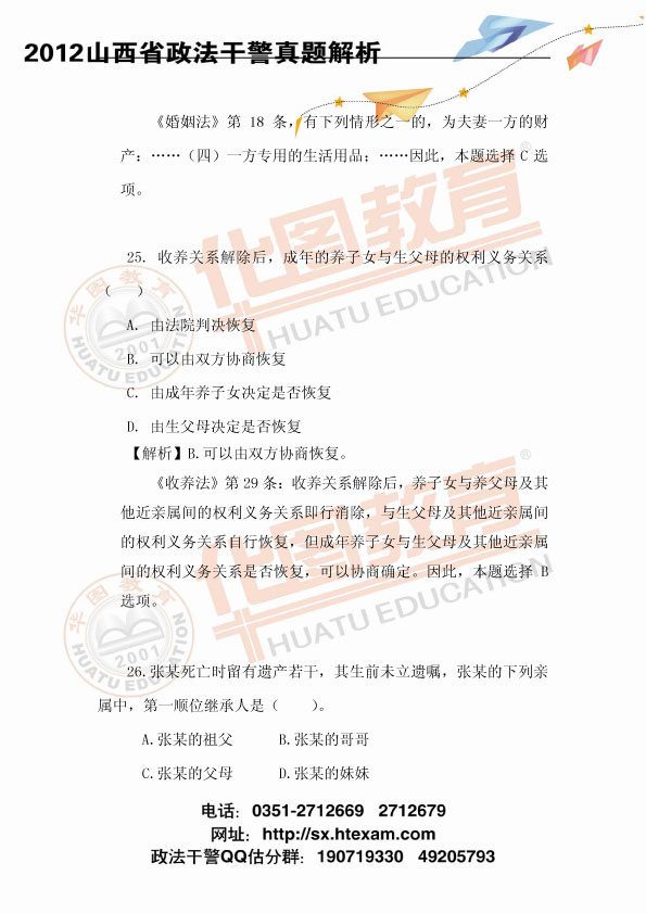 2012山西政法干警考試民法真題及參考答案解析