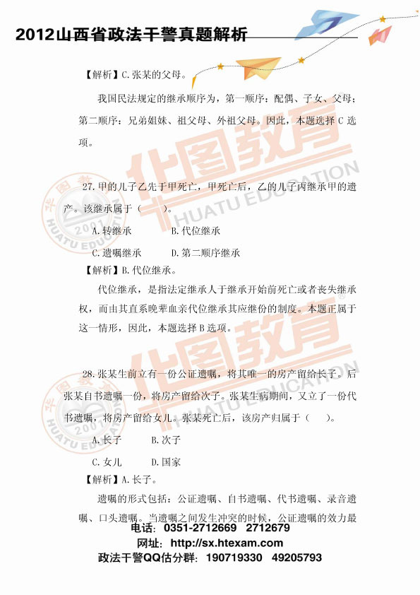 2012山西政法干警考試民法真題及參考答案解析