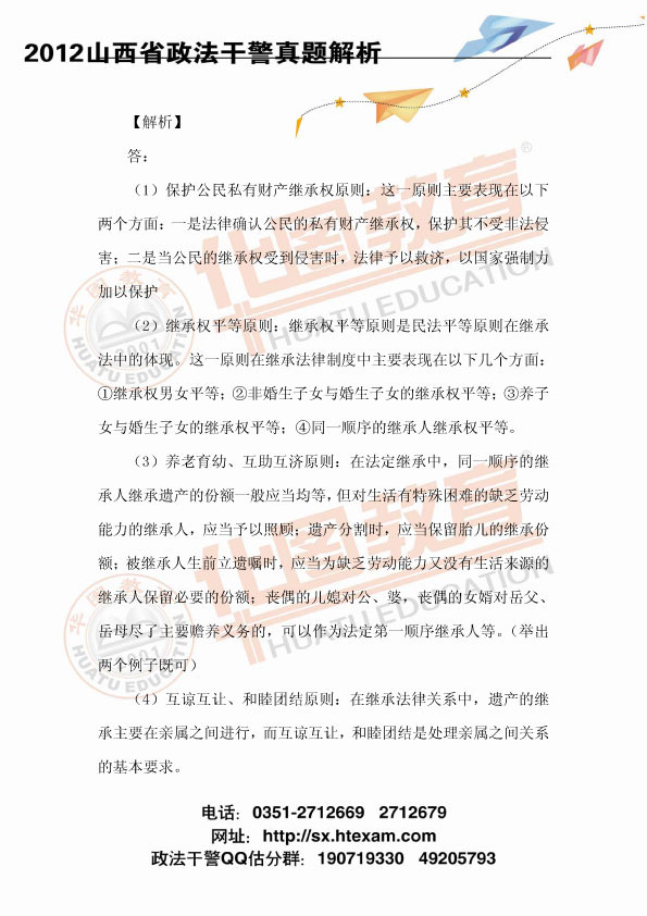 2012山西政法干警考試民法真題及參考答案解析
