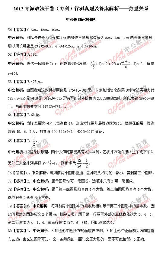 2012青海政法干警(專科)行測(cè)真題及答案解析