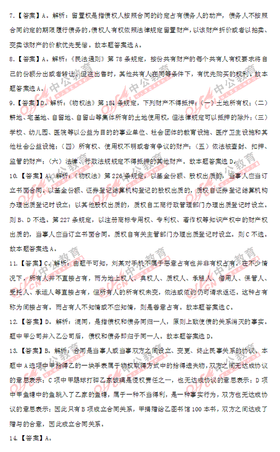 2012年政法干警考試民法學參考答案(圖文)