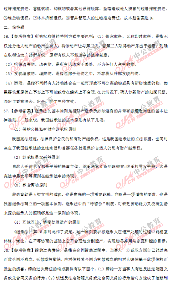 2012年政法干警考試民法學(xué)參考答案(圖文)