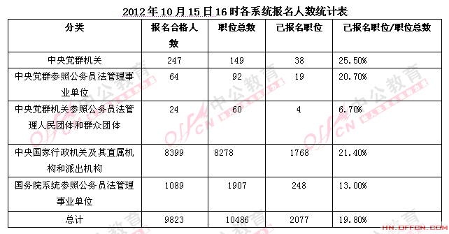 2013年國家公務員考試報名數據分析(截止到10月15日16時)