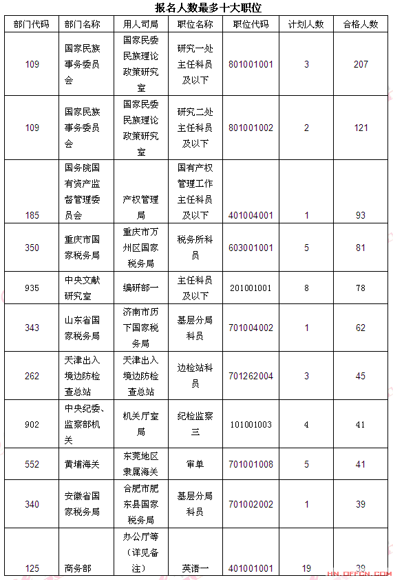2013年國家公務員考試報名數據分析(截止到10月15日16時)